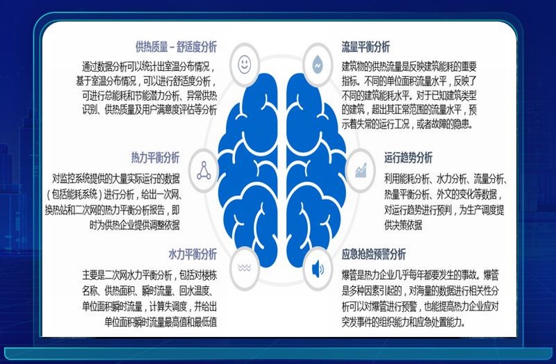 采用目前主流的分布式架构,结合大数据、人工智能算法等先进技术,生成AI模型,自动控制热网系统运行,并不断自我学习优化,实现按目标精确供热。智慧热网平台能通过对热源、换热站、室内温度、室外温度的数据采集使用AI算法构建多种人工智能模型,构建源、网、站、户四个节点端到端之间的多维度管控体系。对热源参数预测,换热站自动调控,进行综合性运算并自动托管,从根本上解决传统人工调控不及时且无法对数据完全掌控而造成能源的浪费。